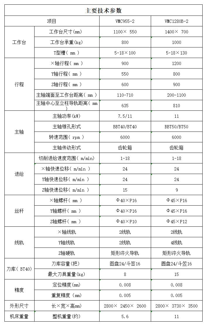 1 、VMC系列線軌齒輪箱式加工中心,配置數控高低兩檔,無極變速主軸箱,既可以滿足低速重切削需求,又能滿足高速精細加工要求。